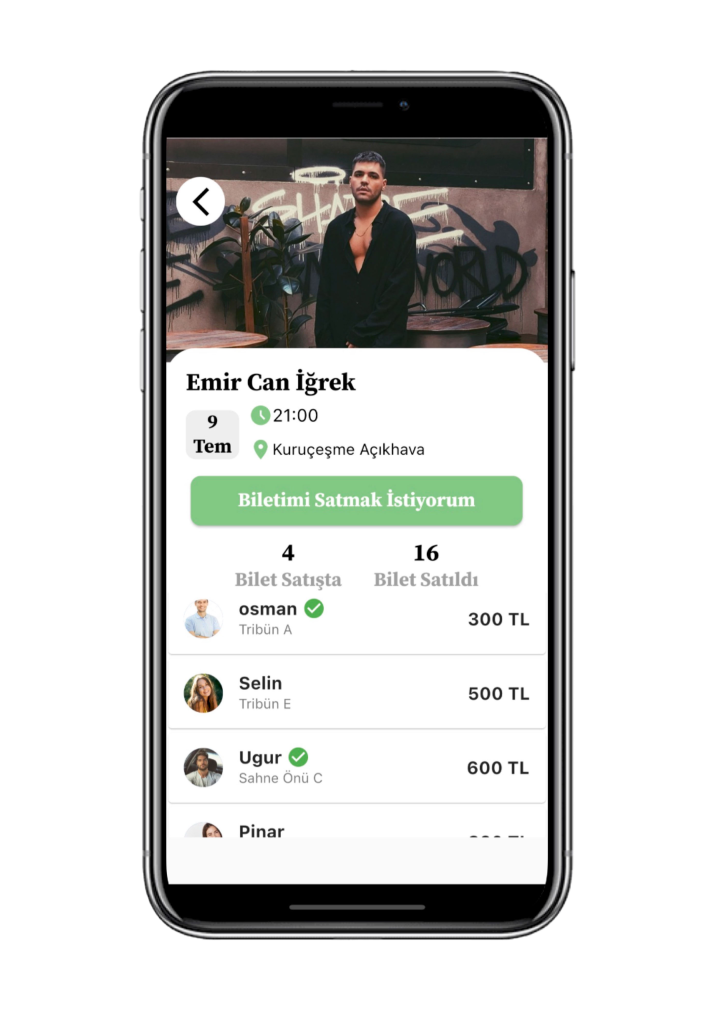 - Haksız rekabeti önlemek için uygulama orijinal bilet fiyatının maksimum %20 üzerinde fiyatlandırmaya izin veriyor. Uygulama kullanıcıların her daim adil bir fiyat ödemesini misyon edinmiş.